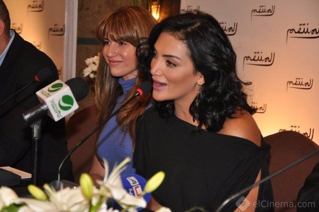 حورية فرغلى أثناء حديثها فى المؤتمر الصحفى عن المسلسل