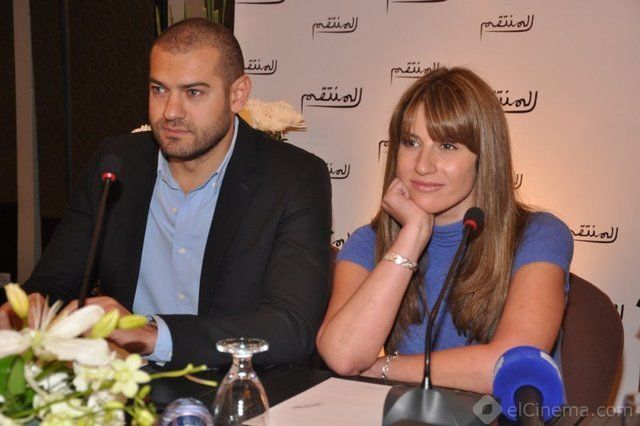 عمرو يوسف وإيناس كامل أثناء الحديث الصحفى