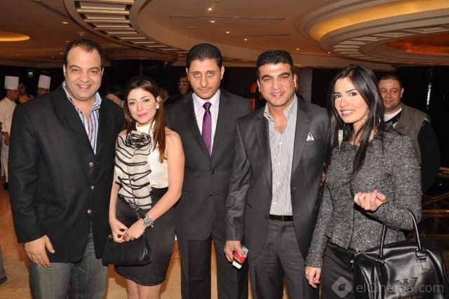 جانب من الحضور فى صورة تجمعهمامع أميرة هانى وحسام شعبان