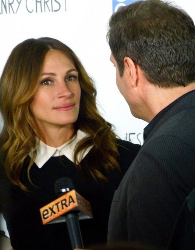 الممثلة جوليا روبرتس تجري حواراً صحافياً أثناء حضورها العرض اﻷول لفيلم Jesus Henry Christ في لوس أنجلوس