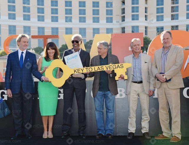 فريق عمل فيلم فيجاس الأخيرة يستلمون مفتاح لاس فيجاس امام فندق بيلاجيو.