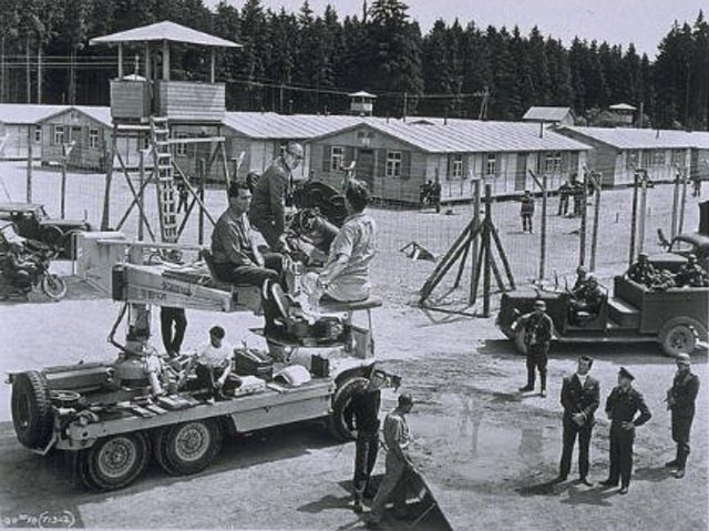 تجهيز الكاميرا لأحد مشاهد فيلم الهروب الكبير ١٩٦٣