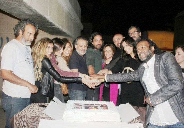 أبطال المسلسل أثناء اﻹحتفال ببدء التصوير