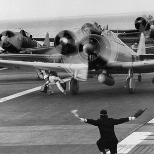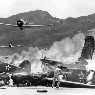 MoreThe P-40's destroyed on the ground are full-scale mock-ups, some remote-controlled to taxi.