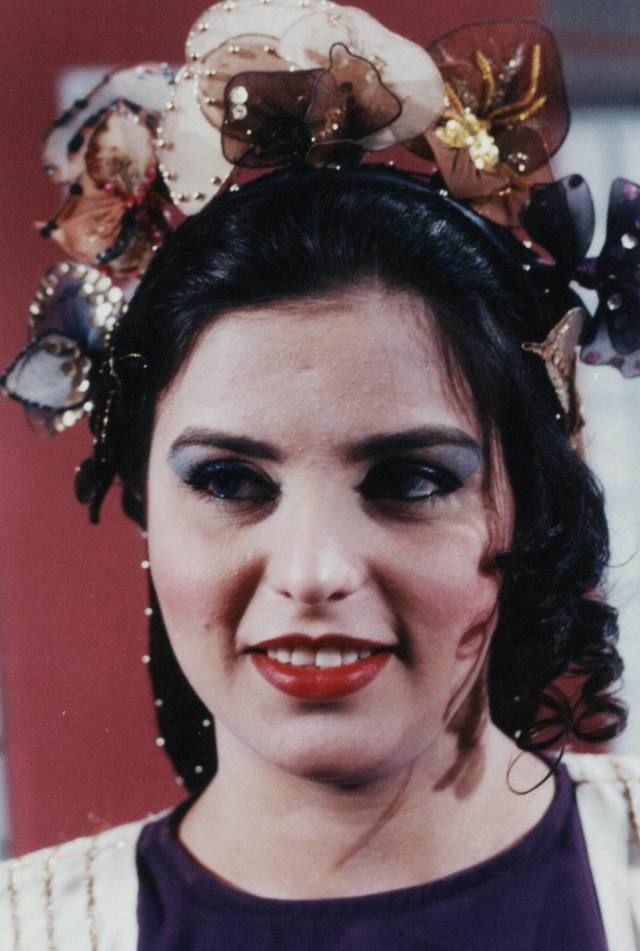 الفنانة عبير فريد في مشهد من مسلسل أشهى الموائد في مدينة القواعد المخرج عماد عبد الهادي المؤلف مالك المطلبي سنة 1999