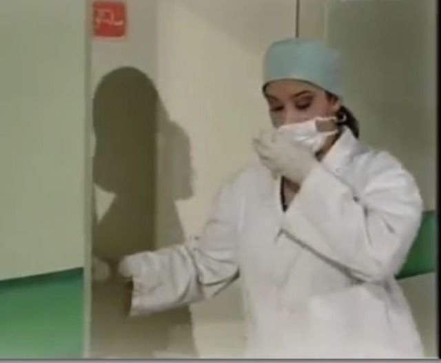 الفنانة عبير فريد في مشهد من مسلسل اشهى الموائد في مدينة القواعد تأليف مالك المطلبي و اخراج عماد عبد الهادي سنة 1999 في العراق بغداد