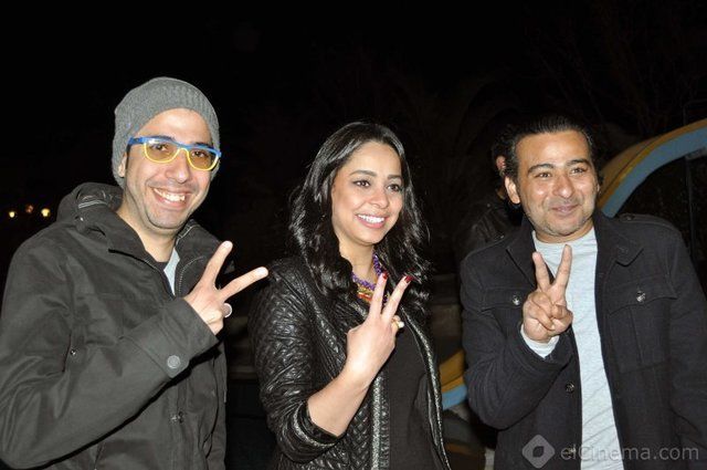 "أحمد عزمي"، و"أيمن منصور" مع المنتجة"منى مكين" في آخر أيام تصوير فيلم "روميو السيدة"