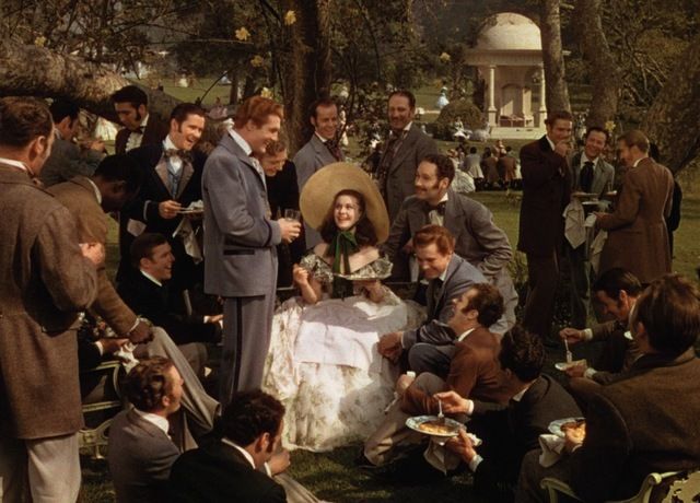 شباب تارا يلتف حول سكارليت أوهارا فى حفل الشواء بعد ان أقنعت كل منهم انها معجبة به وحده.