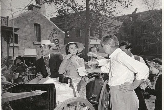 كلارك جيبل و فيفيان لى يستمعان لملاحظات المخرج فيكتور فليمنج قبل أداء أحد مشاهد فيلم ذهب مع الريح.