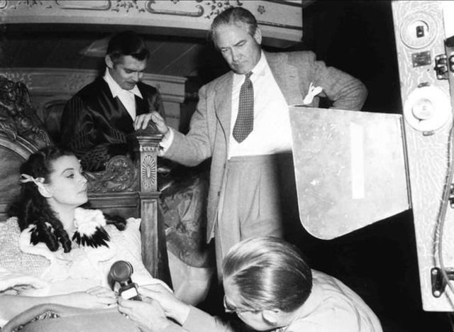 المصور يضبط ابعاد الكاميرا مع فيفيان لى ويراقبه المخرج فيكتور فليمنج بينما انشغل كلارك جيبل بعروسه القادمة النجمة كارول لومبارد التى سيتزوجها بعد أسبوعين.