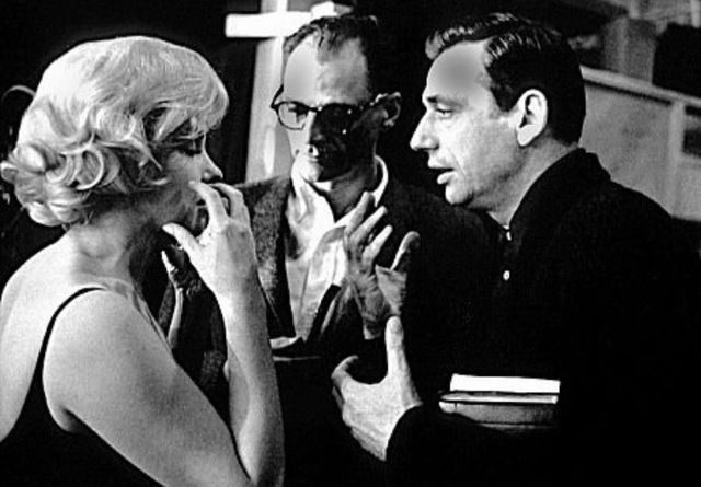 مارلين مونرو وزوجها الكاتب آرثر ميلر مع إيف مونتان فى كواليس فيلم Let's Make Love 1960.