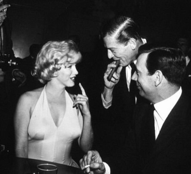ايف مونتان و ميلتون بيرل و مارلين مونرو فى الحفل الدعائى لفيلم دعنا نحب ١٩٦٠.