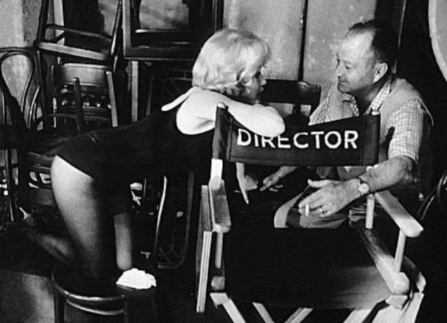 مارلين مونرو مع مساعد المخرج فى كواليس فيلم دعنا نحب ١٩٦٠.
