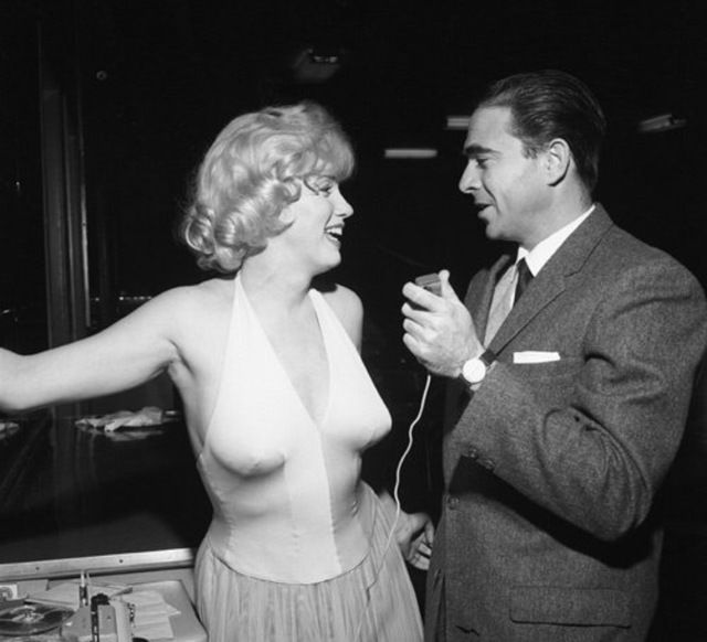 مارلين مونرو مع الممثل والمنتج أرمى أرشيرد فى الحفل الدعائى لفيلم دعنا نحب ١٩٦٠.