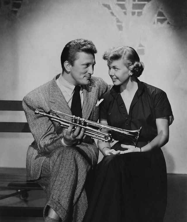 كيرك دوجلاس يشرح لدوريس داى كيف يعزف على البوق، فى لقطة من فيلم Young Man with a Horn.