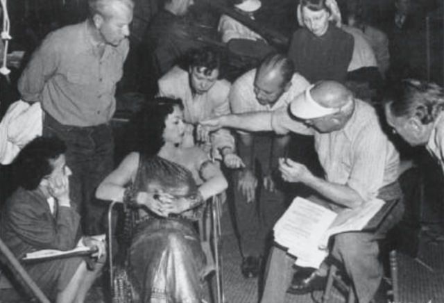 المخرج سيسيل دى ميل يبدى ملاحظاته للفنانة هيدى لامار قبل تصوير أحد مشاهد فيلم شمشون ودليلة ١٩٤٩.