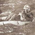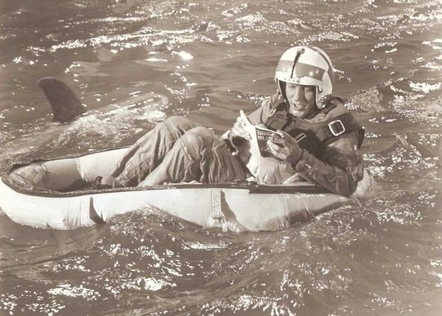 ديك فان دايم فى الماء بعد ان قفز من طائرته
