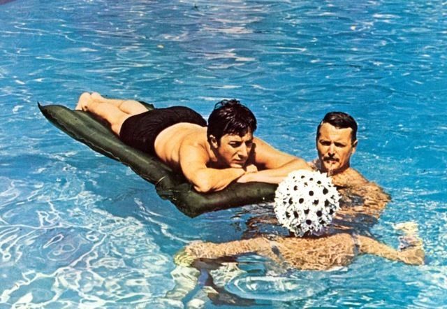مستر ومسز برادوك فى حمام السباحة يسألان ابنهما بن عن مشاريعه بعد التخرج.