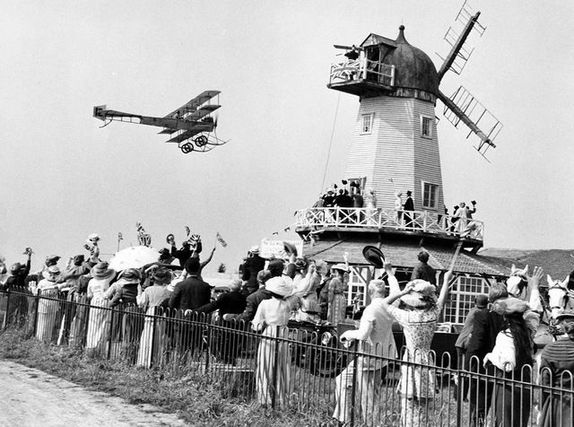 المتسابق الإنجليزى تيرى توماس يجرب طائرته قبل سقوطه فى مستنقع المجارى.