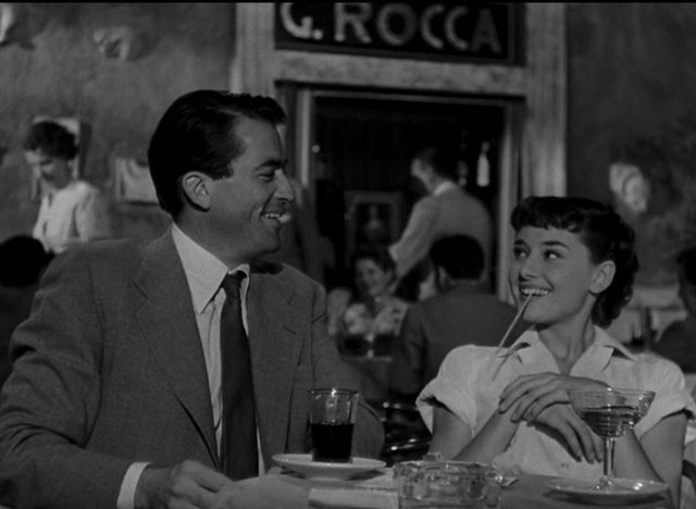 الأميرة آن تستمتع بالجلوس على الكافيه مثل بقية أفراد الشعب ومعها الصحفى برادلى الذى لا يعلم انها أميرة.