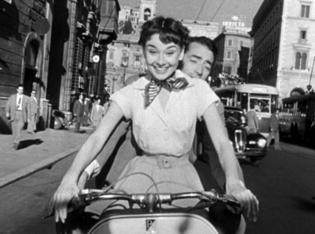 الأميرة آن تقود الفيسبا فى شوارع روما ويركب وراءها الصحفى برادلى.
