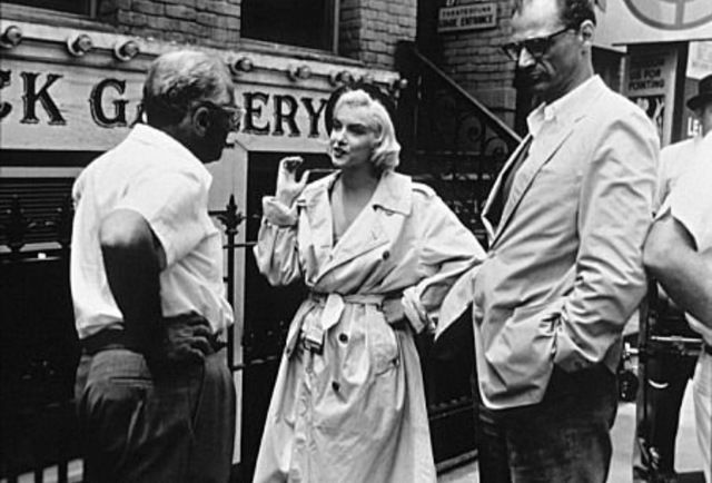 مارلين مونرو مع المخرج جورج كوكور وزوجها الكاتب أرثر ميللر أثناء تصوير الفيلم