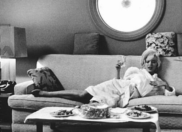 مارلين مونرو تستريح فى حجرتها تستمتع ببعض الأطعمة الخفيفة أثناء تصوير الفيلم