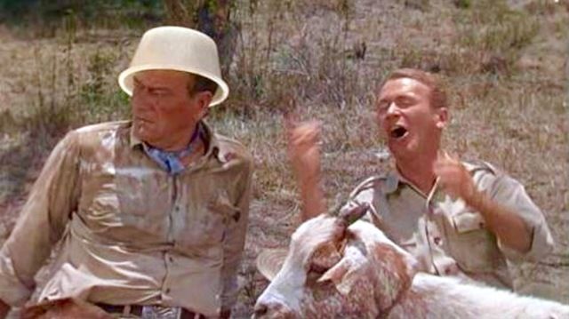 ريد بوتونس يضحك بعد ان اكتشف ان جون واين يحلب الجدي.