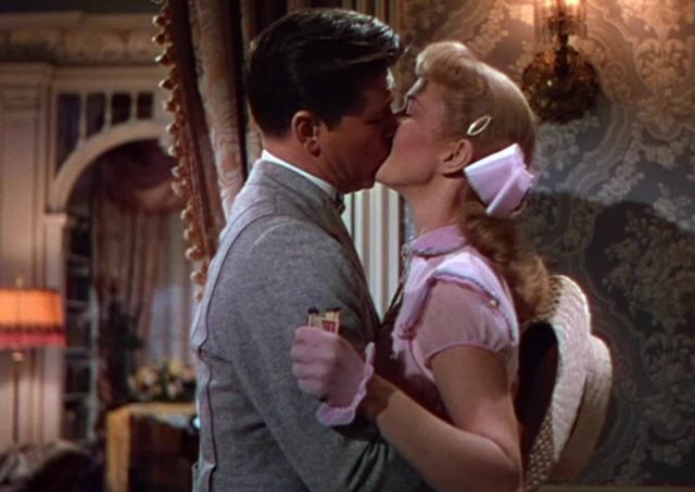 قبله بين دوريس داى و جوردون ماكراى فى مشهد من فيلم On Moon Light Bay 1951.