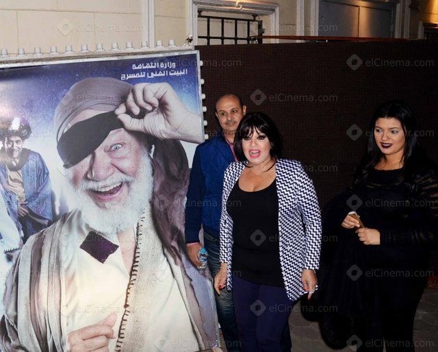 الفنانة فيفي عبده أثناء مشاركتها الجمهور مشاهدة مسرحية يحيى الفخراني (ليلة من ألف ليلة).