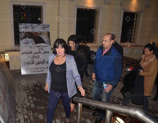 الفنانة فيفي عبده أثناء مشاركتها الجمهور مشاهدة مسرحية يحيى الفخراني (ليلة من ألف ليلة).
