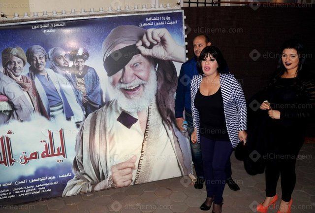 الفنانة فيفي عبده أثناء مشاركتها الجمهور مشاهدة مسرحية يحيى الفخراني (ليلة من ألف ليلة).