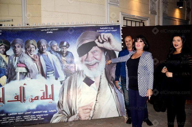 الفنانة فيفي عبده أثناء مشاركتها الجمهور مشاهدة مسرحية يحيى الفخراني (ليلة من ألف ليلة).