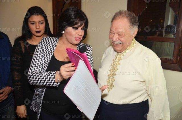 الفنانة فيفي عبده أثناء مشاركتها الجمهور مشاهدة مسرحية يحيى الفخراني (ليلة من ألف ليلة).