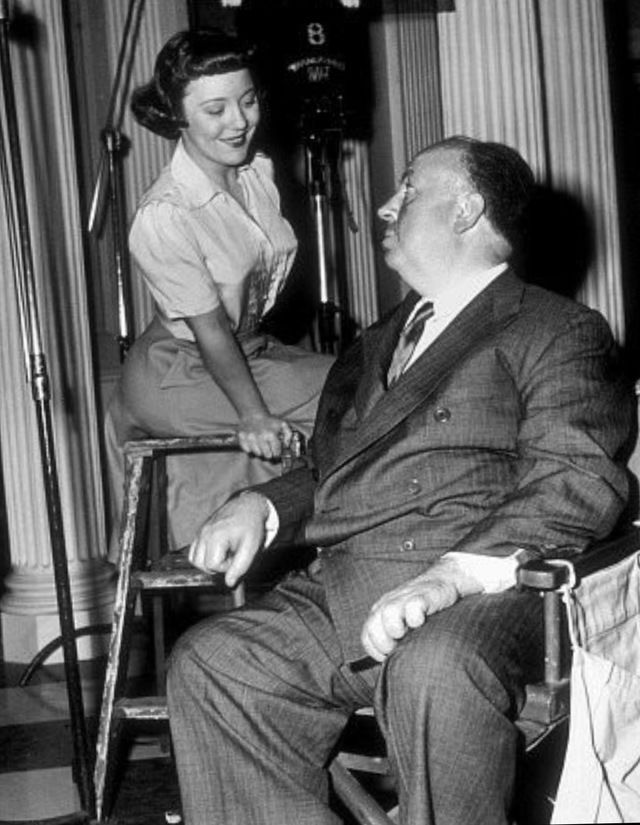 المخرج ألفريد هيتشكوك فى الكواليس مع إبنته الممثلة باتريشيا هيتشكوك.