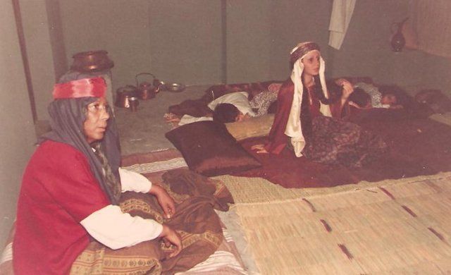 الفنانة فريال كريم و الفنانة عبير فريد في مشهد من مسلسل المتنبي المخرج أبراهيم عبدالجليل المؤلف معاذ يوسف 1980