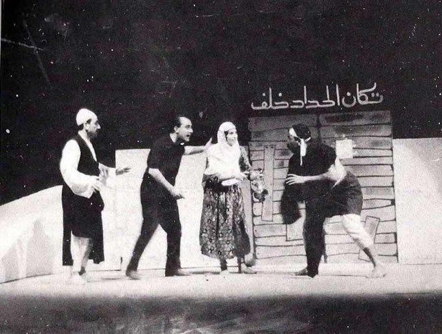 مسرحية المفتاح ، عرضت على المسرح القومي1968 ... من اليمين : كريم عواد ، ناهدة الرماح ، روميو يوسف ، و يوسف العاني .