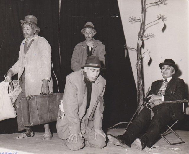 في انتظار گودو . روميو يوسف مع سامي السراج ، صادق علي شاهين و هاشم السامرائي. 1966 ، الجمعية البغدادية .