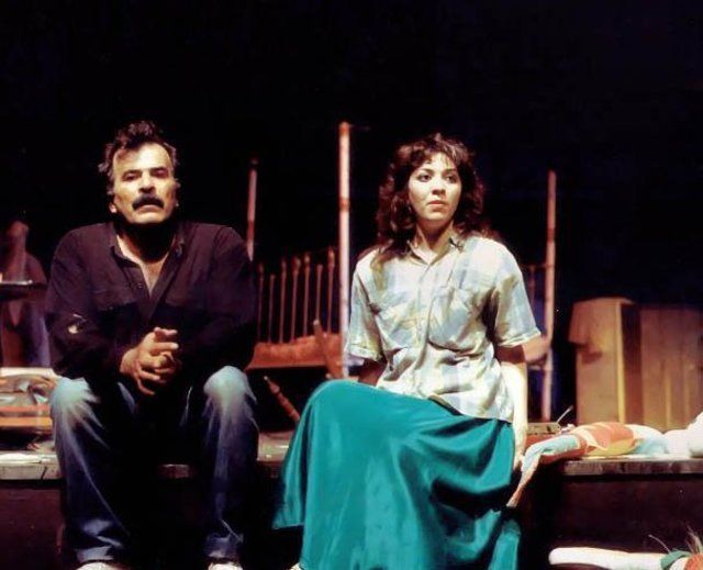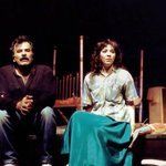 الفنانة سهير اياد والفنان جواد الشكرجي، في مشهد من مسرحية (قصة حب معاصرة) التي اخرجها الراحل هاني هاني .