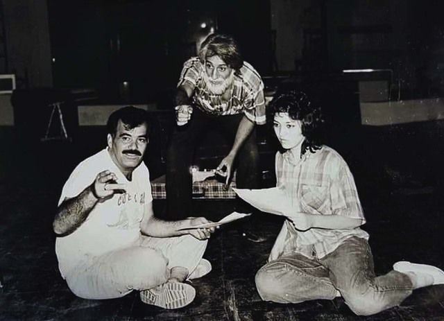 اثناء البروفات على مسرحية (قصة حب معاصرة) .