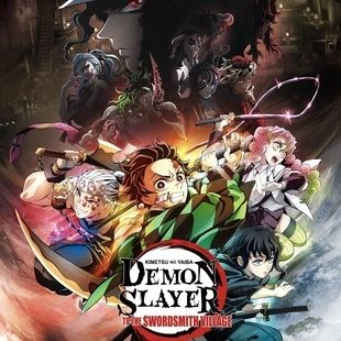 The action showcases the epic battle pitting Tanjiro, Hashira, Tenjin, and company against a handful of enemies during a battle that takes place in Infinity Castle.