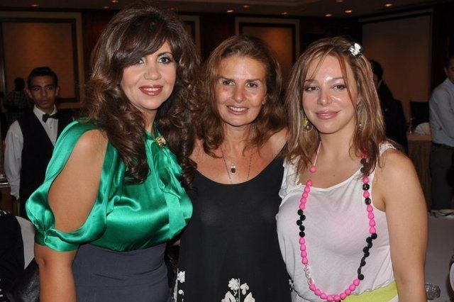 صورة لسوزان نجم الدين ويسرا وبوسي شلبي في حفل عيد ميلاد الشحرورة الـ 83 عام 2011.