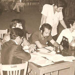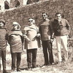 الأدهمي وفريق عمل مسرحية"زهرة من دم" خلال البروفات في مسرح الرابطة الثقافية بطرابلس-لبنان