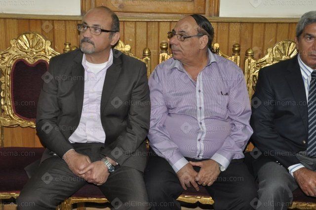 الفناني أثناء عزاء ابنة الفنان حسن حسنى.
