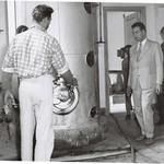 صورة نادرة من العرض الأول لفيلم (قلب يحترق)، ويظهر فيها بطلة الفيلم مديحة يسري، وزوجها الموسيقار محمد فوزي، يتوسطهما السيد أنور السادات الأمين العام للاتحاد الوطني (الرئيس أنور السادات فيما بعد).