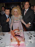 صورة لصباح وعمر الحريري في حفل عيد ميلاد الشحرورة الـ 83 عام 2011.