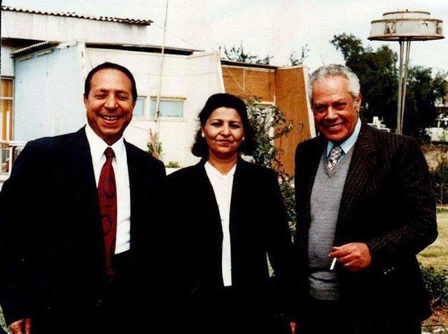 الفنانان جعفر السعدي وماجدة السعدي مع الفنان المصري يحيى شاهين في مرسى الزوارق ببغداد عام 1981
