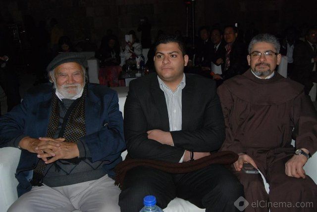 الأب بطرس دانيال مع مدير التصوير رمسيس مرزوق في حفل سلام من مصر بمناسبة السنة الصينية الجديدة