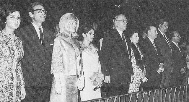الوفد السينمائي لمصر الذي ضم الفنان أحمد مظهر والفنانات سعاد حسني، وفاتن حمامة، ونادية لطفي، أثناء حضورهم مهرجان الفيلم السوفيتي عام 1964