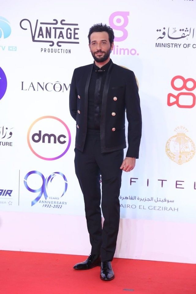 النجم كريم قاسم على السجادة الحمراء في افتتاح مهرجان القاهرة السينمائي الدولي.